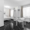 Modern studio apartment in upscale residential setting. Metro stop within walking distance. Equipped with every comfort.