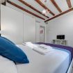 Tra le attrazioni da non perdere c’è la Chiesa di Santa Maria della Salute, esempio di architettura barocca veneziana che, essendo costruita nell’area di Punta della Dogana, è possibile vedere sia dal Bacino di San Marco sia dal Canal Grande. Per gli amanti dei musei c’è l’imbarazzo della scelta. Dorsoduro ospita infatti il Museo dell’Accademia che racchiude una raccolta delle pitture venete e la Collezione di Peggy Guggenheim (Palazzo Venier), al cui interno si trovano opere di svariate correnti artistiche. Inoltre, troviamo il Museo d’Arte Contemporanea di Punta della Dogana, sede permanente della collezione François Pinault e Ca’ Rezzonico, prestigioso palazzo veneziano affacciato sul Canal Grande e sede del Museo del Settecento veneziano. Tra le cose da fare non può mancare una sosta nel Campo di Santa Margherita, vero cuore del sestiere e luogo di ritrovo per i veneziani. All’interno del sestiere vi si trova la Chiesa dei Gesuati con opere di Tiepolo e Tintoretto, la Chiesa di San Sebastiano in stile rinascimentale, con decorazioni di Paolo Veronese e la Chiesa di San Trovaso che sorge di fianco all’omonimo cantiere (dove vengono costruite le gondole). Uno dei più bei palazzi affacciati sul Canal Grande è Ca’ Dario, su cui aleggiano diverse leggendarie maledizioni, situato tra il Museo dell’Accademia e la Chiesa della Salute. Quest’ultimo è riconoscibile per la leggera inclinazione verso destra e per la presenza di numerosi medaglioni circolari che fungono da decorazione sulla facciata.\nPer chi arriva in treno, la suite dista 1,5 km dalla stazione Venezia Santa Lucia ed è raggiungibile a piedi in circa 20 minuti. In alternativa, si può prendere il vaporetto – Linea 1 o 2 – fino alla fermata Accademia (circa 30 minuti). La suite dista circa 250 metri a piedi dalla fermata Accademia del vaporetto.